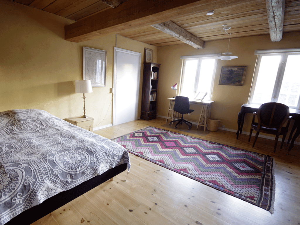 The Thomasine Gyllembourg room has everything you need for your writing retreat. It features both a classic desk and additional table space for your projects. The room is spacious and bright, with two windows facing the garden that let in plenty of natural light. It is the closest room to the shared kitchen and bathroom and near the garden exit, allowing you to step outside easily and enjoy the beautiful surroundings.
